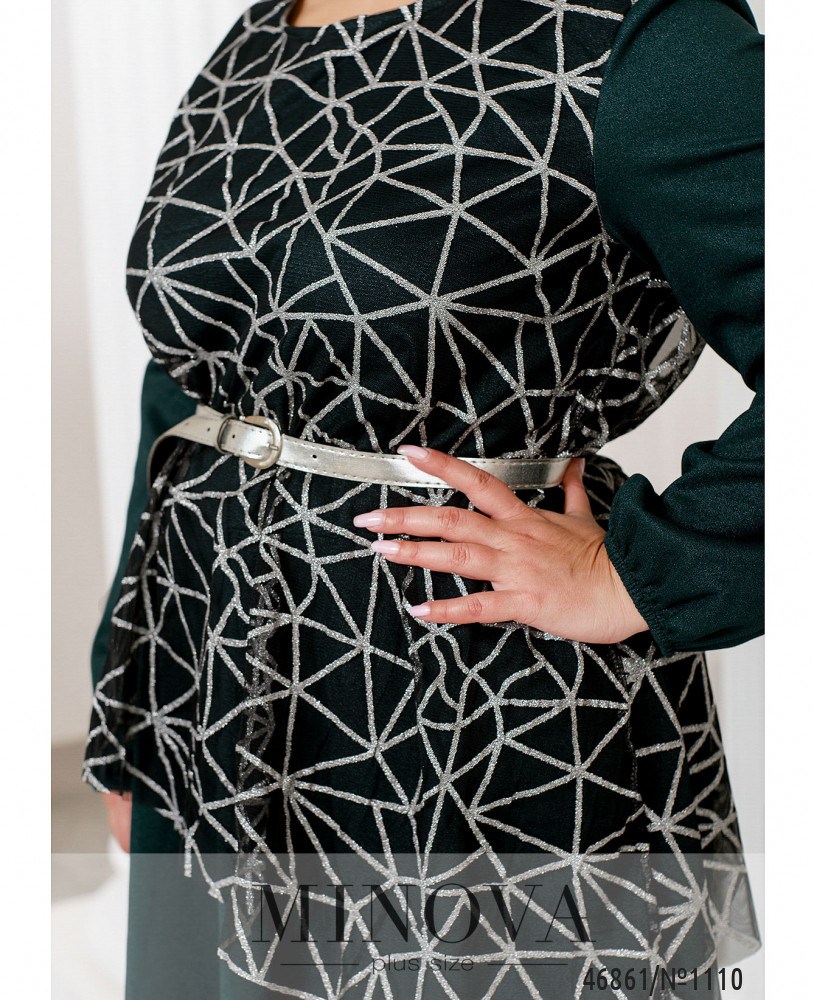 Элегантное платье батал с двуслойным лифом, идеально садятся по фигуре, вне зависимости от ее особенностей. Верхняя часть лифа - ассиметричная и мерцающая, а нижняя часть, рукава и подол выполнены из однотонной ткани. Модель без карманов дополнена длинными рукавами, в запястья которых вшиты резинки. Платье застегивается на маленькую пуговку сзади под шеей.
