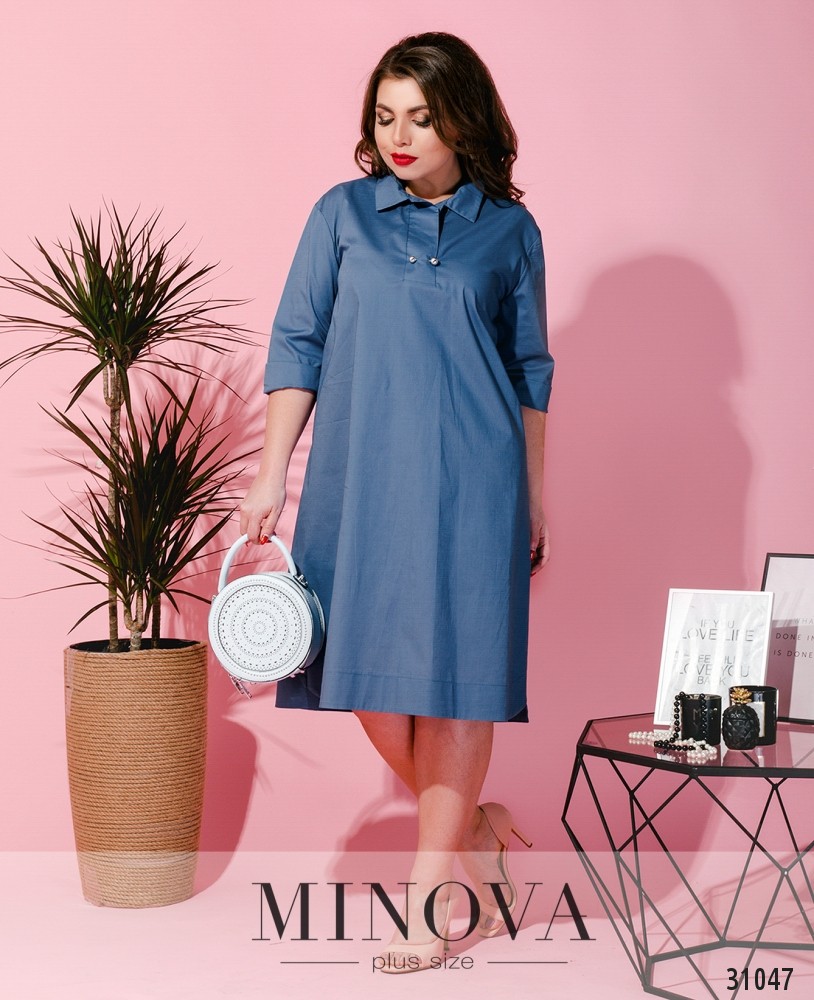 Платье – рубашка с брошью на воротнике. Платье прямого кроя со скругленным подолом на лицевой стороне. Рукава собраны в манжеты. Изделие без молнии.
