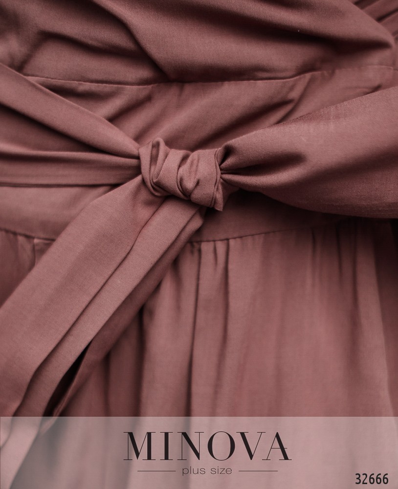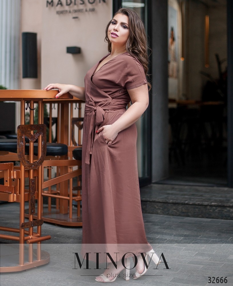 Классическое платье А-силуэта будет уместно при любых модных веяниях. Особенно, если оно ярко-красное или глубокого синего цвета. А для модниц – свежий оливковый или цвета смородинового варенья. Платье большого размера из каталога Minova – с запАхом, карманами и поясом в комплекте, на талии – вставка ткани под пояс. Застёгивается на скрытую змейку от левой подмышки до талии, рукава – свободные. Материал лёгкий, отлично «дышит», не просвечивает и не растягивается, но и не обтягивает фигуру, поэтому хорошо впишется в гардероб вне зависимости от типа фигуры.