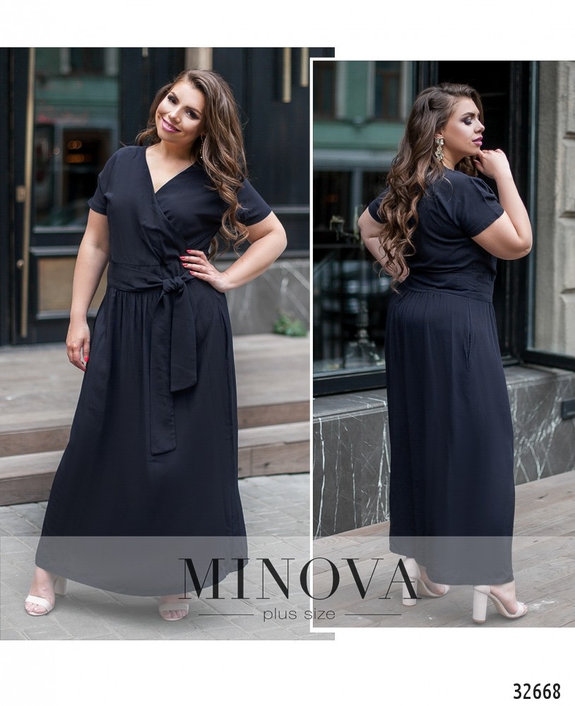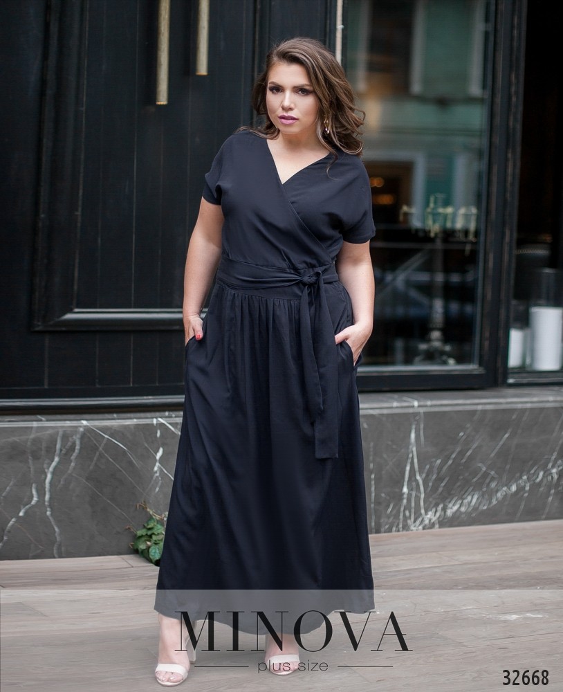 Классическое платье А-силуэта будет уместно при любых модных веяниях. Особенно, если оно ярко-красное или глубокого синего цвета. А для модниц – свежий оливковый или цвета смородинового варенья. Платье большого размера из каталога Minova – с запАхом, карманами и поясом в комплекте, на талии – вставка ткани под пояс. Застёгивается на скрытую змейку от левой подмышки до талии, рукава – свободные. Материал лёгкий, отлично «дышит», не просвечивает и не растягивается, но и не обтягивает фигуру, поэтому хорошо впишется в гардероб вне зависимости от типа фигуры.