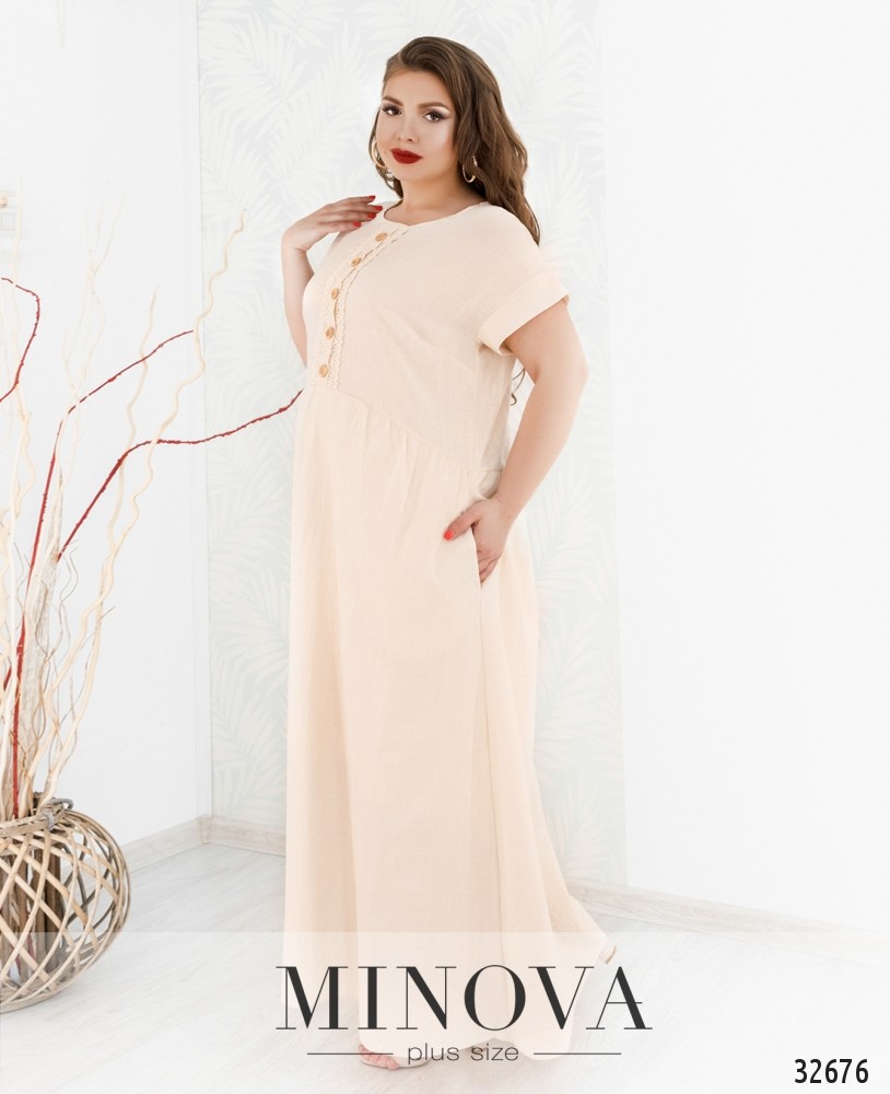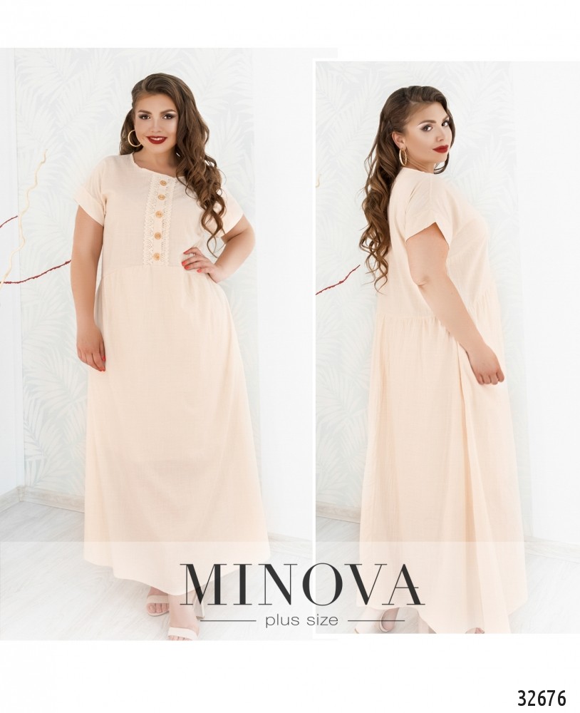 Очаровательное платье большого размера в фолк-стиле представлено в каталоге платьев батал от Minova. На груди – кружевная вставка и деревянные декоративные пуговки. Фасон – приталенный, подол расширяется, рукава небольшие, вырез горловины – полукруглый. В наличии карманы. Материал лёгкий, не тянется, слегка просвечивает, но снизу есть тонкая подкладка. Застёжек нет, платье удобно надевается. Отлично будет смотреться на девушках с типом фигуры «яблоко» или «треугольник». В каталоге представлены нежные пастельные и строгие тёмные оттенки этого платья батал.