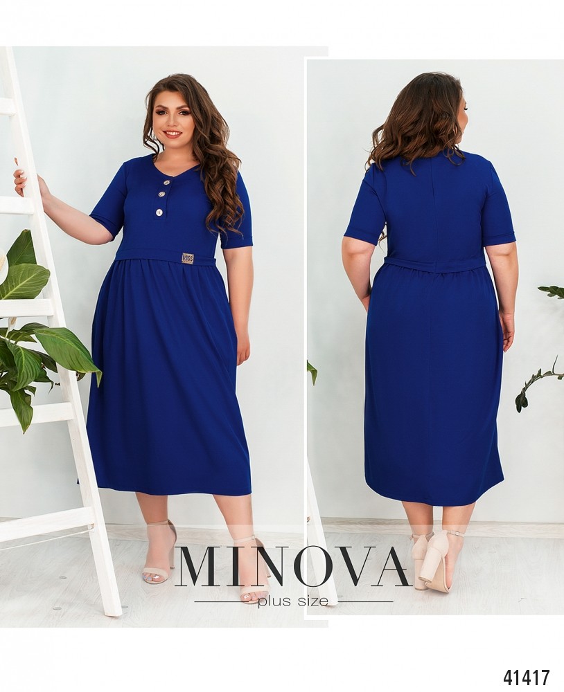 Стильное платье батал со врезными карманами по бокам, пуговицы декоративные, застёжка - вшитая по спинке молния. Рукава с небольшими подворотами, подол подшит к верху, на талии - декоративная нашивка.