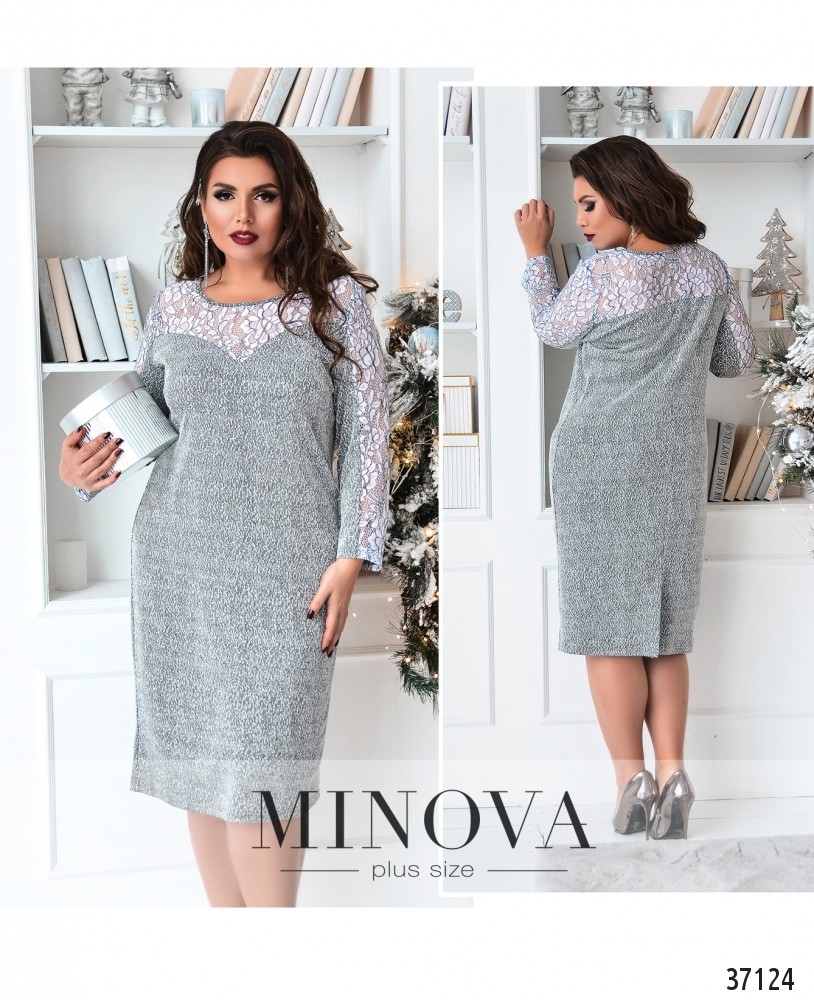 Стильное и нарядное платье батал из свежего каталога женской одежды плюс сайз от Minova отлично впишется в ваш праздничный или даже повседневный гардероб. Платье двуслойное, с мягкой подкладкой снизу и ажурным кружевом сверху. Рукава без манжет и без подкладки. Вырез горловины неглубокий, в виде фигурного каре. Застёжек и карманов на платье нет, сзади на подоле – небольшая шлица. Вы можете дополнить образ обувью на каблуке, и яркими однотонными украшениями. В каталоге представлены пастельные и тёмные оттенки, так что вы можете выбрать самый подходящий именно для вас!