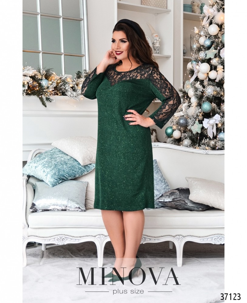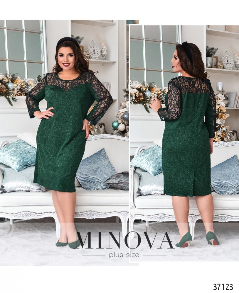 Стильное и нарядное платье батал из свежего каталога женской одежды плюс сайз от Minova отлично впишется в ваш праздничный или даже повседневный гардероб. Платье двуслойное, с мягкой подкладкой снизу и ажурным кружевом сверху. Рукава без манжет и без подкладки. Вырез горловины неглубокий, в виде фигурного каре. Застёжек и карманов на платье нет, сзади на подоле – небольшая шлица. Вы можете дополнить образ обувью на каблуке, и яркими однотонными украшениями. В каталоге представлены пастельные и тёмные оттенки, так что вы можете выбрать самый подходящий именно для вас!