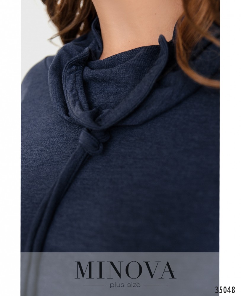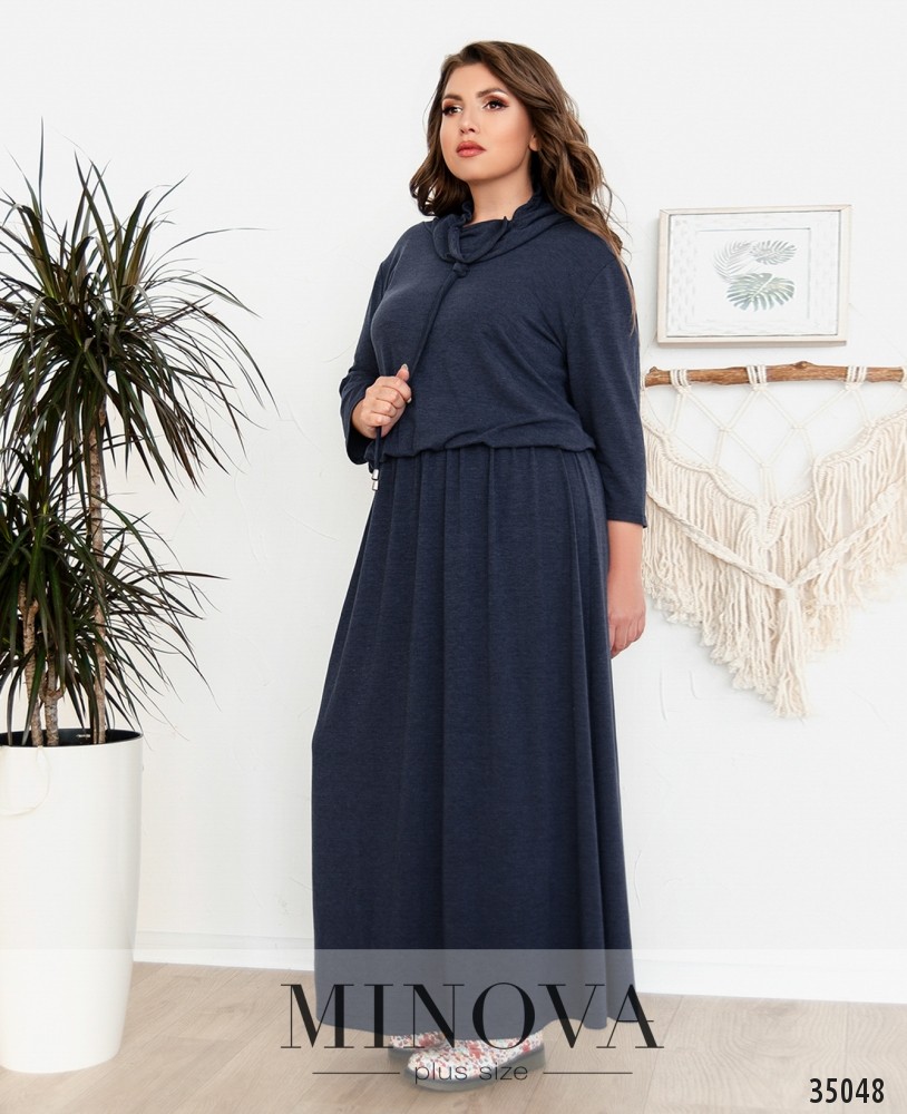 Очень простое и скромное, но тем и привлекательное платье батал А-силуэта из свежего пополнения каталога женской одежды больших размеров от Minova. Платье из очень мягкой, эластичной ткани, со вшитой в пояс резинкой. Подол расклешён, лиф довольно свободный. Рукава длиной до локтя. Воротник-хомут, через него пропущен шнурок, так что вы можете затянуть его чуть туже или ослабить. Застёжек и карманов нет. Материал украшен небольшими, едва заметными блёстками. Прекрасный выбор для повседневного, базового гардероба, можно от души экспериментировать с разными аксессуарами и обувью.
