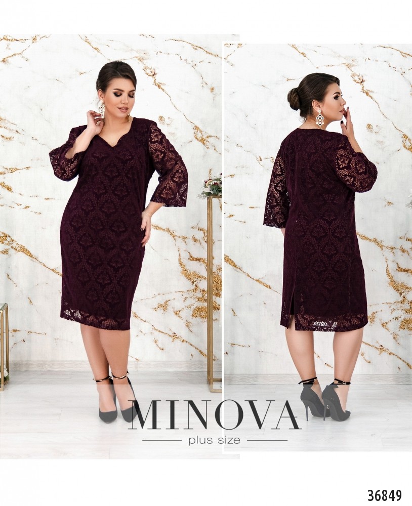 Стильное и нарядное платье батал из свежего каталога женской одежды плюс сайз от Minova отлично впишется в ваш праздничный или даже повседневный гардероб. Платье двуслойное, с мягкой подкладкой снизу и ажурным кружевом сверху. Рукава длиной ¾, без манжет и без подкладки. Вырез горловины неглубокий, в виде фигурного каре. Застёжек и карманов на платье нет, сзади на подоле – небольшая шлица. Вы можете дополнить образ обувью на каблуке, и яркими однотонными украшениями. В каталоге представлены пастельные и тёмные оттенки, так что вы можете выбрать самый подходящий именно для вас!