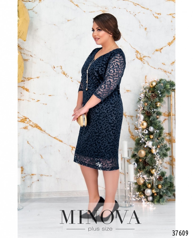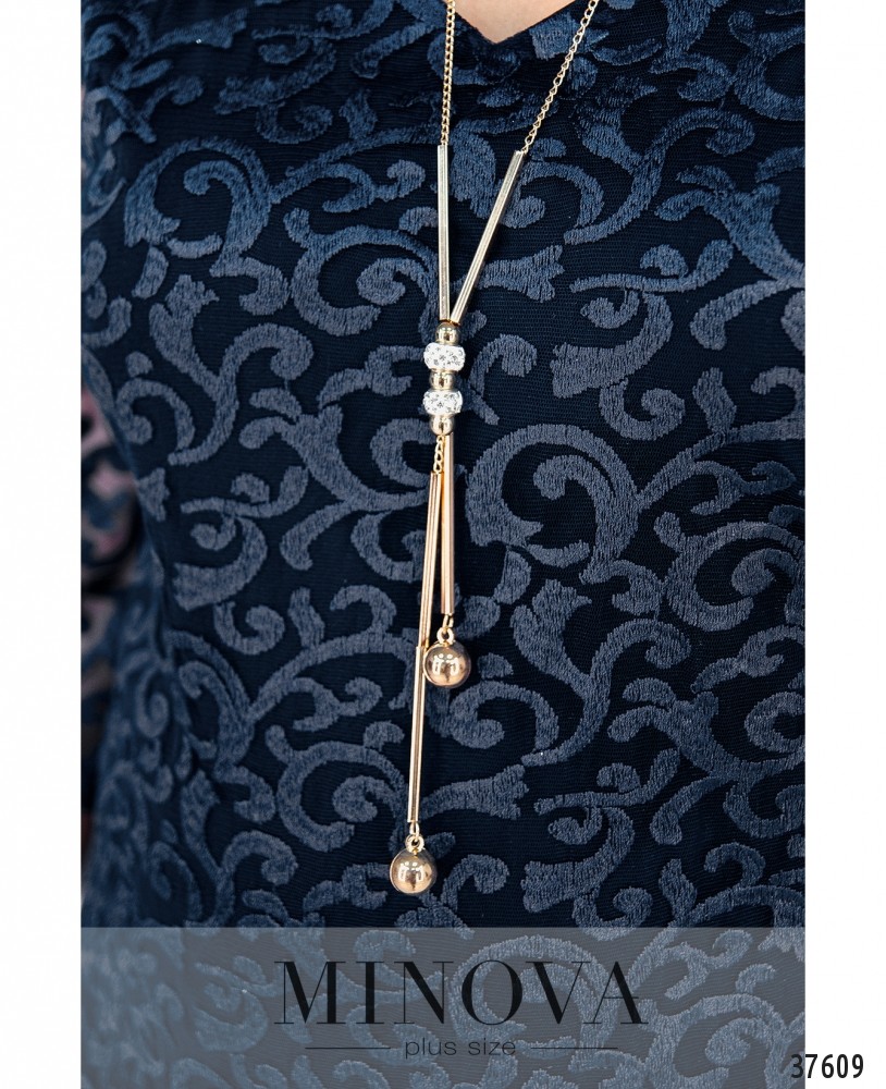 Роскошное вечернее платье батал без застёжек и карманов, прямого кроя. Снизу мягкая подкладка, сверху – элегантный гипюр. Рукава без манжет и без подкладки. Вырез горловины широкий, V-образный. В комплекте прилагается подвеска.
