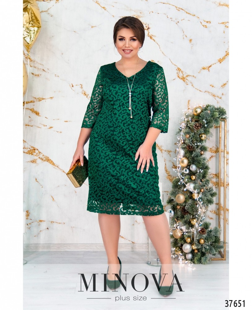 Роскошное вечернее платье батал без застёжек и карманов, прямого кроя. Снизу мягкая подкладка, сверху – элегантный гипюр. Рукава без манжет и без подкладки. Вырез горловины широкий, V-образный. В комплекте прилагается подвеска.