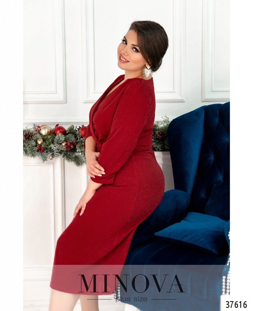 Элегантное минималистичное платье без карманов и застёжек, с подшитым к лифу и расклешённым подолом. Лиф подшит на запАх. Ткань с люрексом, рукава без манжет, на груди вытачки.
