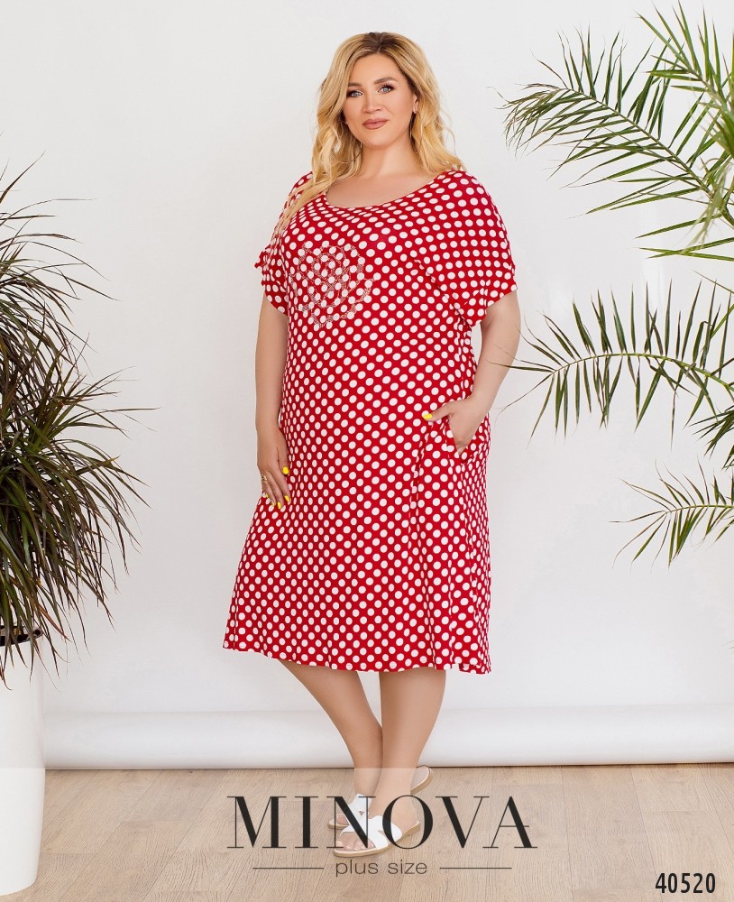 Очаровательное платье батал без застёжек, с вырезом горловины "лодочка", по бокам - врезные карманы, рукава короткие, с отворотами. На груди - едва заметный цветок, выложенный стразами. Украшение входит в комплект.