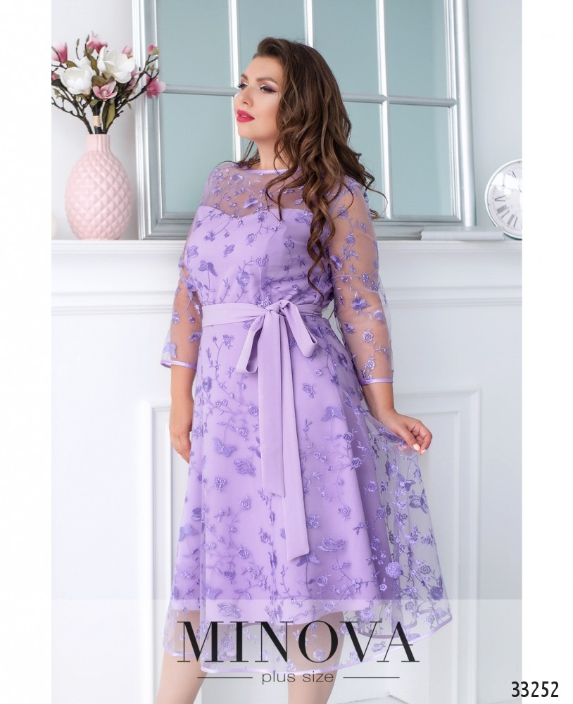 Лавандовый цвет – очень женственный и модный, особенно, если этот цвет относится к нежному гипюровому платью из каталога Minova. Нижняя часть, подкладка, не просвечивает, мягкая, приятная к телу. Верхняя часть – тонкая сеточка, украшенная цветочным узором. Лиф в районе груди и рукава – прозрачные, что добавляет лёгкости и элегантности. В комплекте – длинный широкий пояс в тон, который подчеркнёт линию талии. Застёжка-молния вшита по спине, на шее – небольшая пуговка. Платье слегка приталено, но подойдёт девушкам с любым типом фигуры, кроме, пожалуй, «прямоугольной».