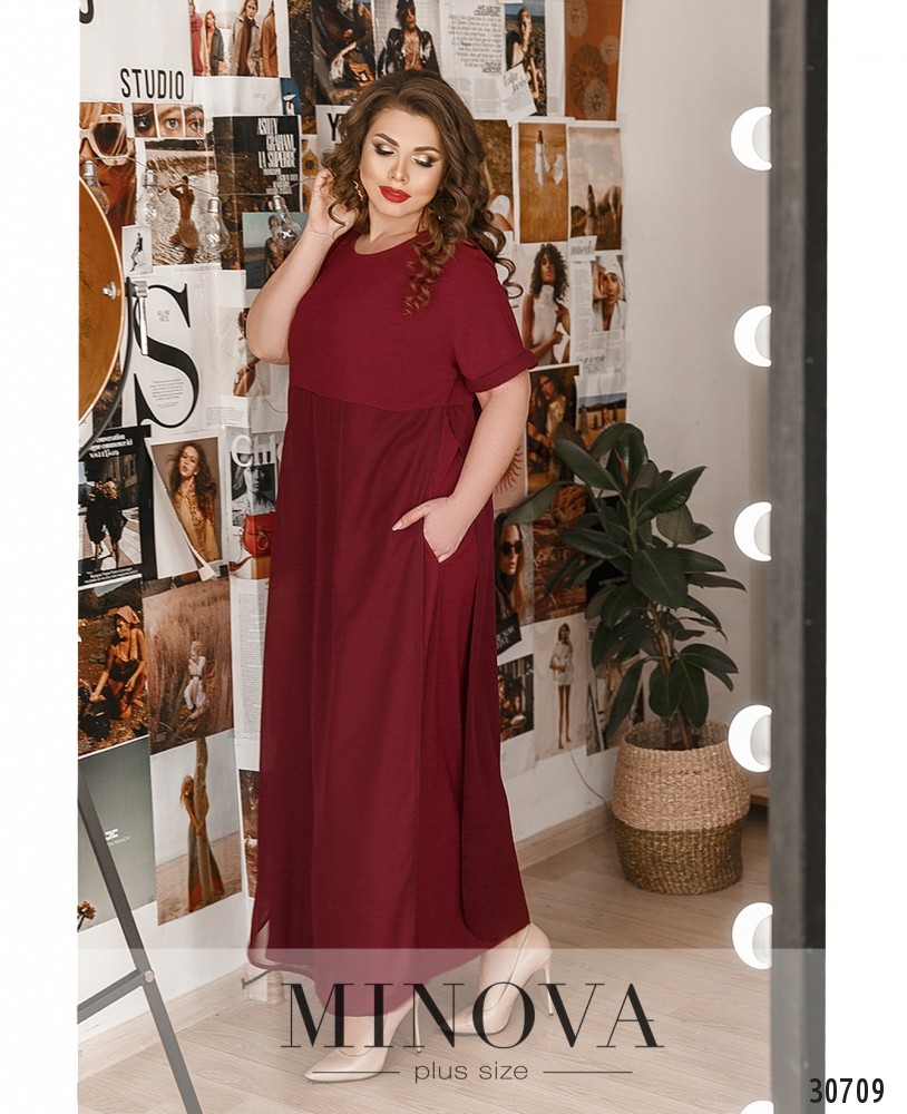 56 р-р: длина платья 129см, длина рукава 32см, обхват рукава 44см, ОГ – 116см, ОБ – 142см.