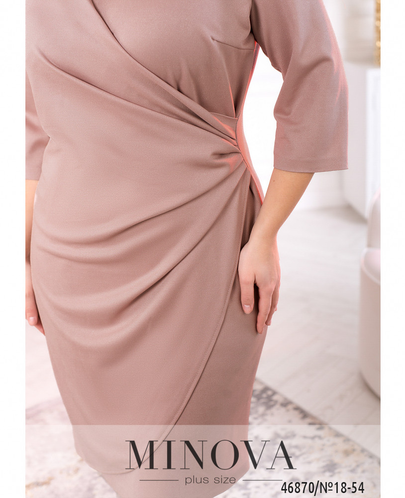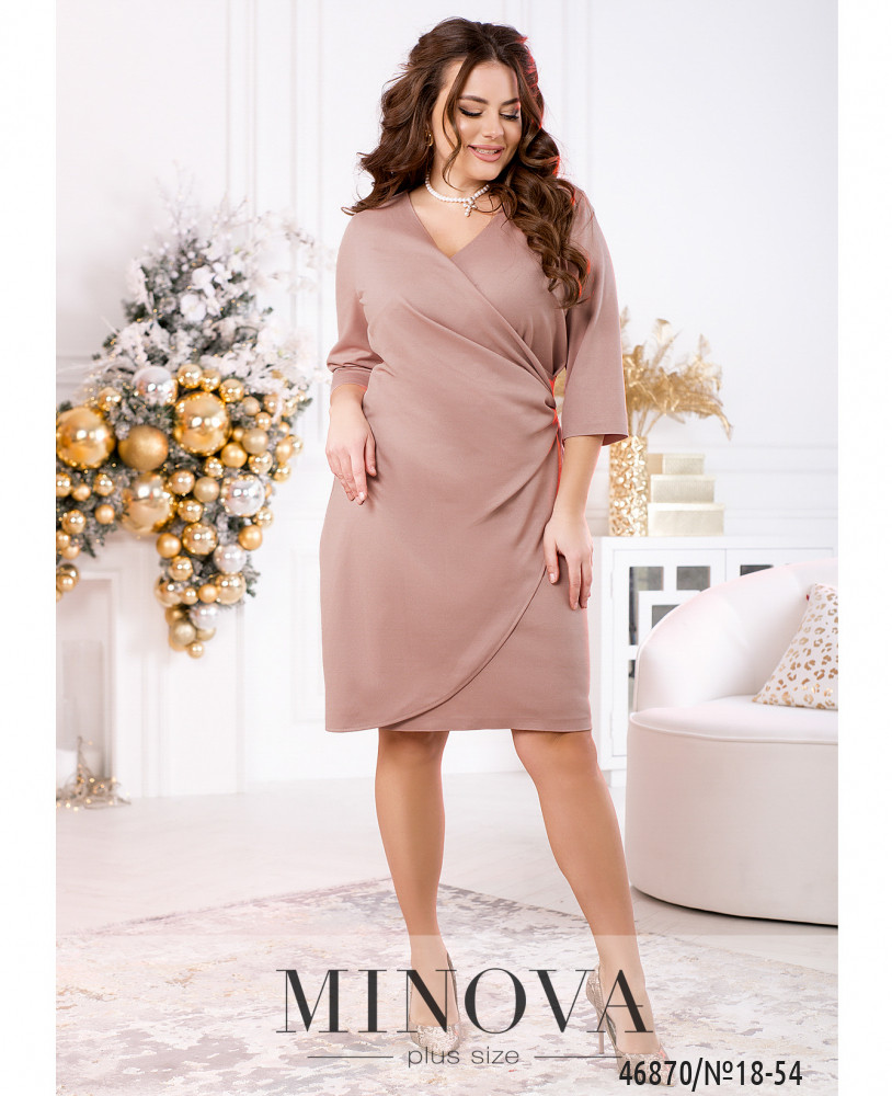 Изящное платье по фигуре, подчеркивающие аппетитные изгибы, с рукавами ¾ подшито на запАх с драпировкой в зоне декольте и бедрах, что еще больше придает женственности фигуре. На спине - скрытая молния и разрез по линии шага. Данная модель поможет создать лаконичный и женственный образ.
