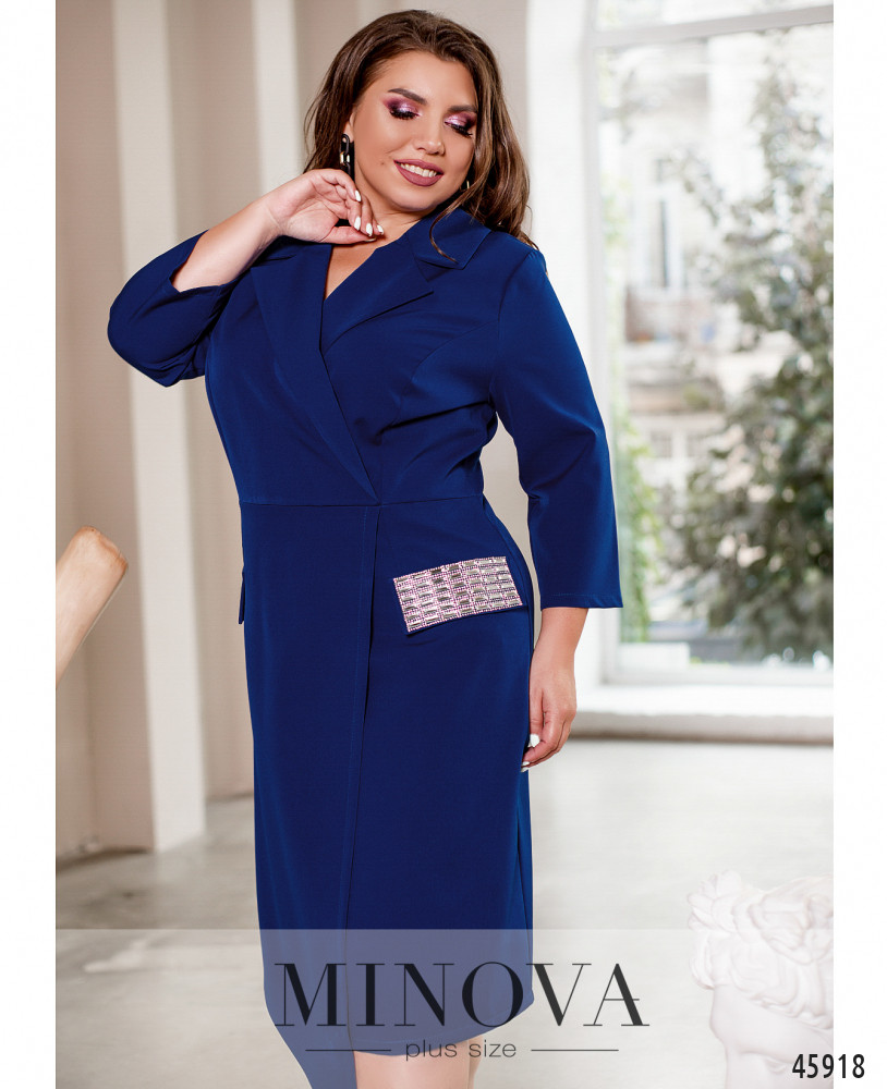 В женственном платье-миди приталенного силуэта, подшитом на запах, вы будете очаровательны как в офисе, так и на вечеринке или празднике. Эта модель дополнена воротником с лацканами, рукавами 7/8 без манжет и сияющими накладными клапанами без карманов. Изюминку добавляет ассиметричный подол и декоративные складки-защипы на лифе. Платье застегивается на змейку, вшитую по спинке.