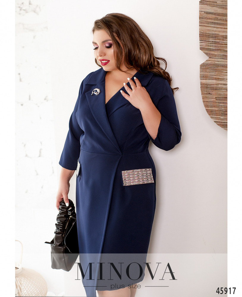 В женственном платье-миди приталенного силуэта, подшитом на запах, вы будете очаровательны как в офисе, так и на вечеринке или празднике. Эта модель дополнена воротником с лацканами, рукавами 7/8 без манжет и сияющими накладными клапанами без карманов. Изюминку добавляет ассиметричный подол и декоративные складки-защипы на лифе. Платье застегивается на змейку, вшитую по спинке.