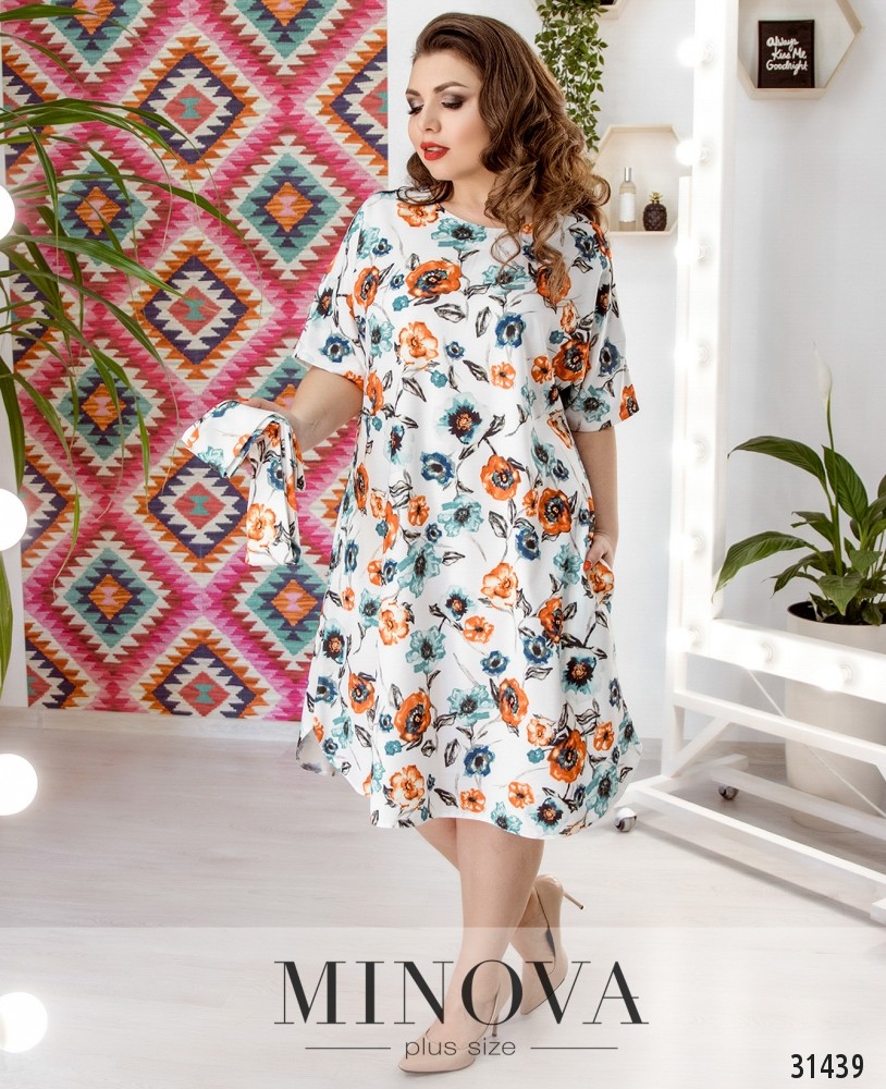 54 р-р: длина платья 102см, длина рукава 37см, обхват рукава 52см, ОГ – 124см.