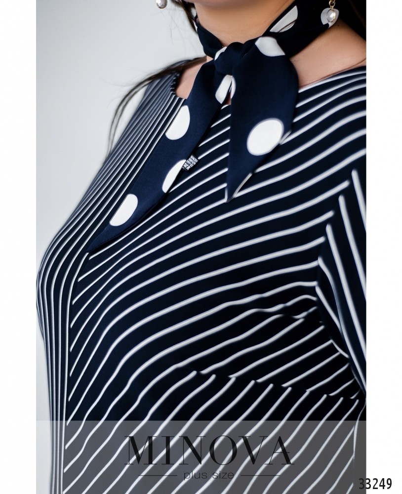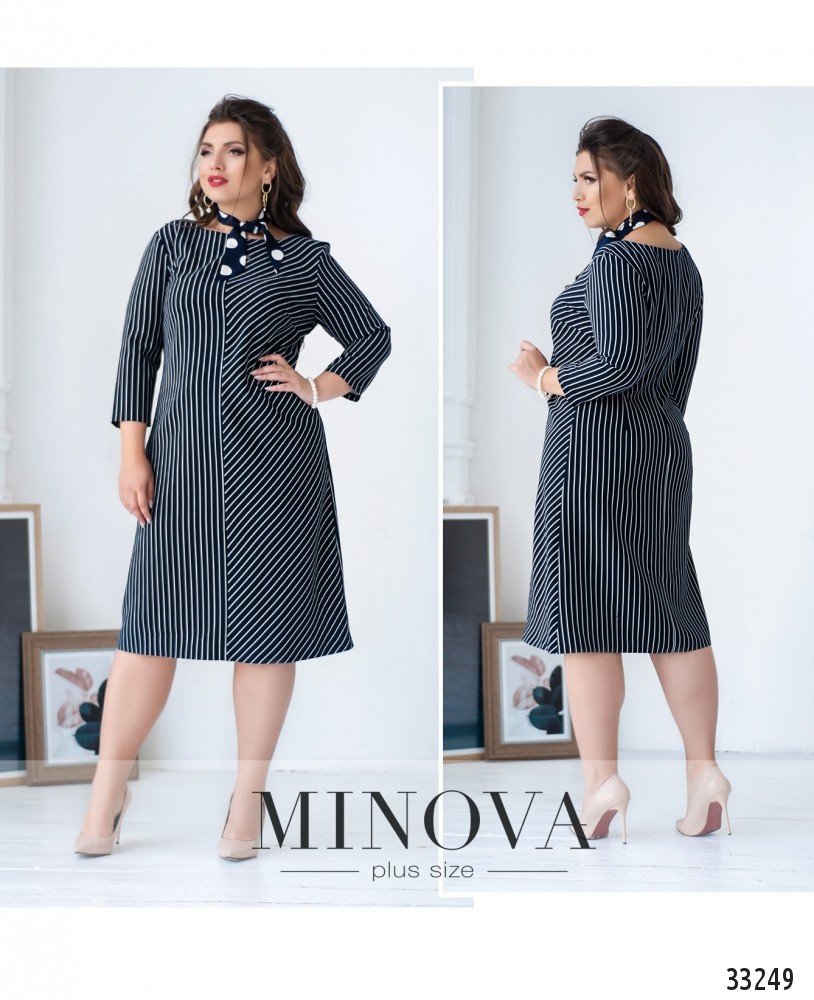 Визуальные эффекты принта – мощный инструмент для создания необычного образа! Представленная модель платья от Minova прекрасно это иллюстрирует. Платье состоит из двух частей: левая – с прямыми продольными тонкими полосками, а правая – с диагональными, на обоих рукавах длиной ¾ - продольные, что создаёт неожиданный вау-эффект. Вырез горловины широкий, полукруглый, на груди – вытачки, карманов нет. Материал очень лёгкий, не тянется. Платье такого фасона идеально подойдёт девушкам с «прямоугольной» фигурой или типом «яблоко», но в принципе хорошо будет смотреться на любой фигуре.