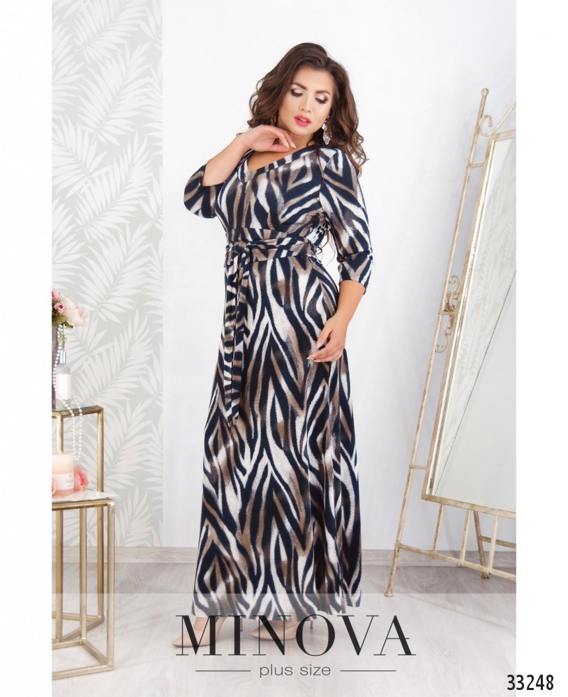 Необычные дизайнерские решения – «фишка» Minova! К примеру, представленное платье выполнено в актуальном анималистичном принте, но главное – это слегка прорезиненные «пупырчатые» вставки белого цвета, которые придают принту объёмности и «реальности», создавая интересный визуальный эффект. Платье без застёжек, ткань хорошо тянется и приятна к телу, в комплекте пояс, карманов нет. Крой не прямой: блуза пришита к подолу, но свободный и не слишком прилегающий. С помощью пояса можно создать более приталенный силуэт. Не требует дополнительных аксессуаров, поскольку наряд яркий сам по себе. Обувь допустима любая: спортивная и классическая. Прекрасный вариант для любой фигуры, особенно – для «прямоугольной».