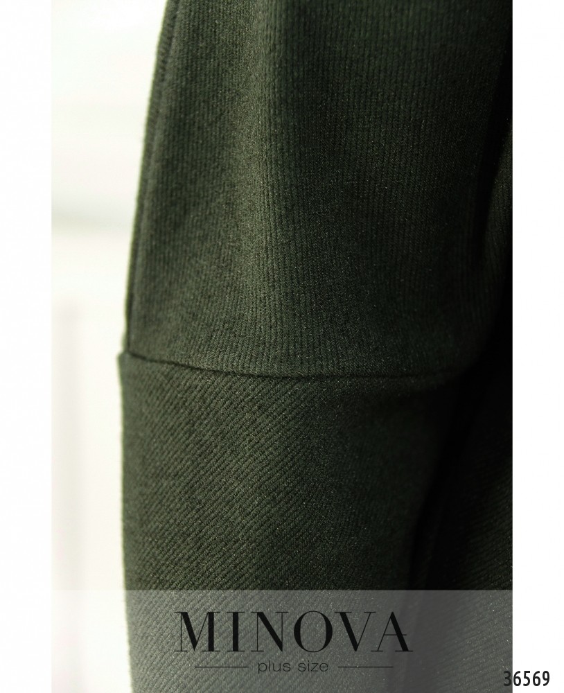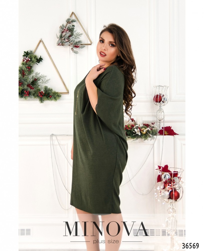 Хочется чего-то необычного, такого, чего точно нет у подружек, да и у тебя ещё не было? Стоит обратить внимание на представленную в новом каталоге Minova модель платья батал. Особая изюминка этого платья – наличие рукава только с одной, правой стороны. Слева – только вырез. Платье с рукавами фасона «летучая мышь», которые начинаются прямо от подола. Подол снизу более узкий, к верху расширяется. Вырез горловины широкий, полукруглый, застёжек и карманов нет. Ткань очень мягкая, приятная к телу. Тёмная однотонная расцветка и минималистичный фасон дают возможность выбирать разные аксессуары и обувь.