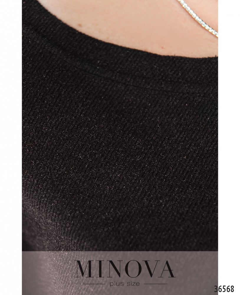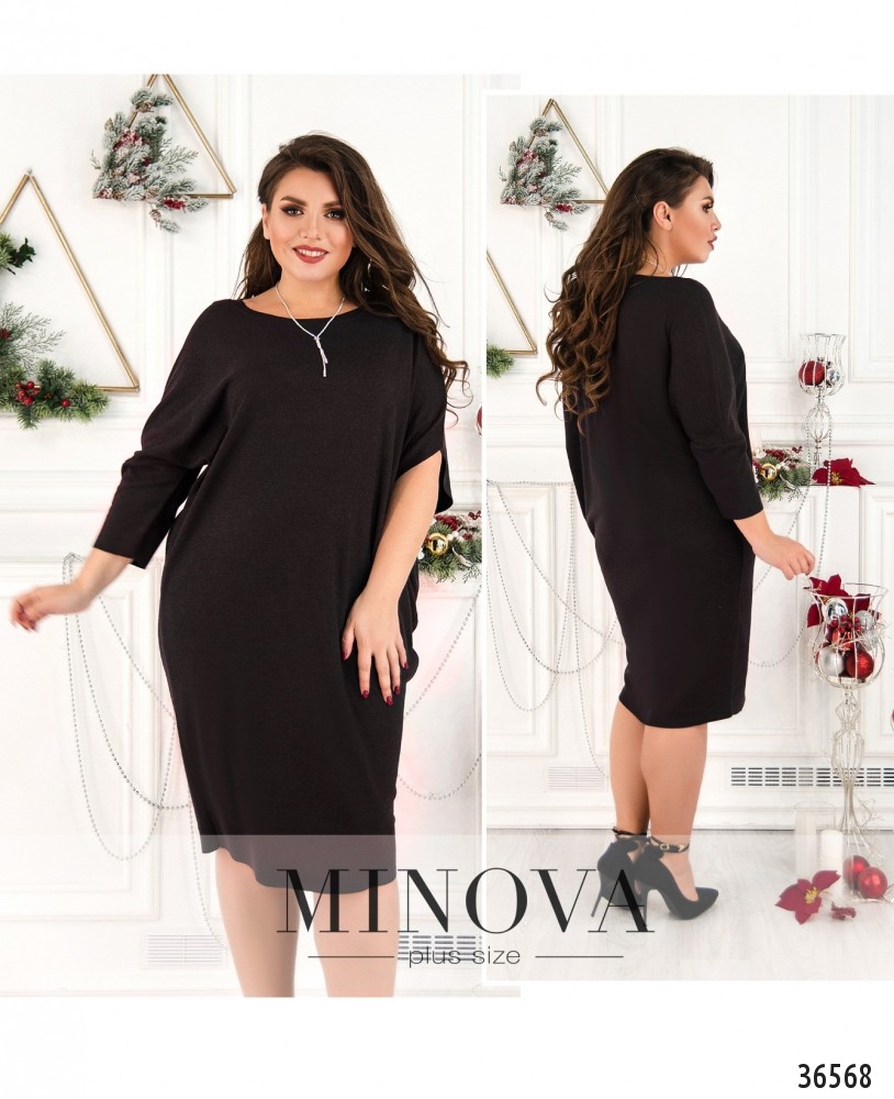Хочется чего-то необычного, такого, чего точно нет у подружек, да и у тебя ещё не было? Стоит обратить внимание на представленную в новом каталоге Minova модель платья батал. Особая изюминка этого платья – наличие рукава только с одной, правой стороны. Слева – только вырез. Платье с рукавами фасона «летучая мышь», которые начинаются прямо от подола. Подол снизу более узкий, к верху расширяется. Вырез горловины широкий, полукруглый, застёжек и карманов нет. Ткань очень мягкая, приятная к телу. Тёмная однотонная расцветка и минималистичный фасон дают возможность выбирать разные аксессуары и обувь.
