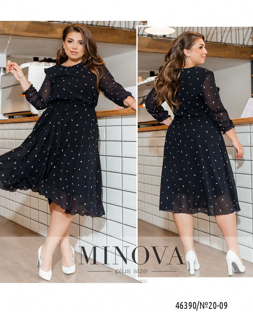 48 р-р: длина платья 115см, длина рукава от плечевого шва 50см, обхват рукава 35см, ОГ - 102см, ОТ -72/94см, ОБ -128см.