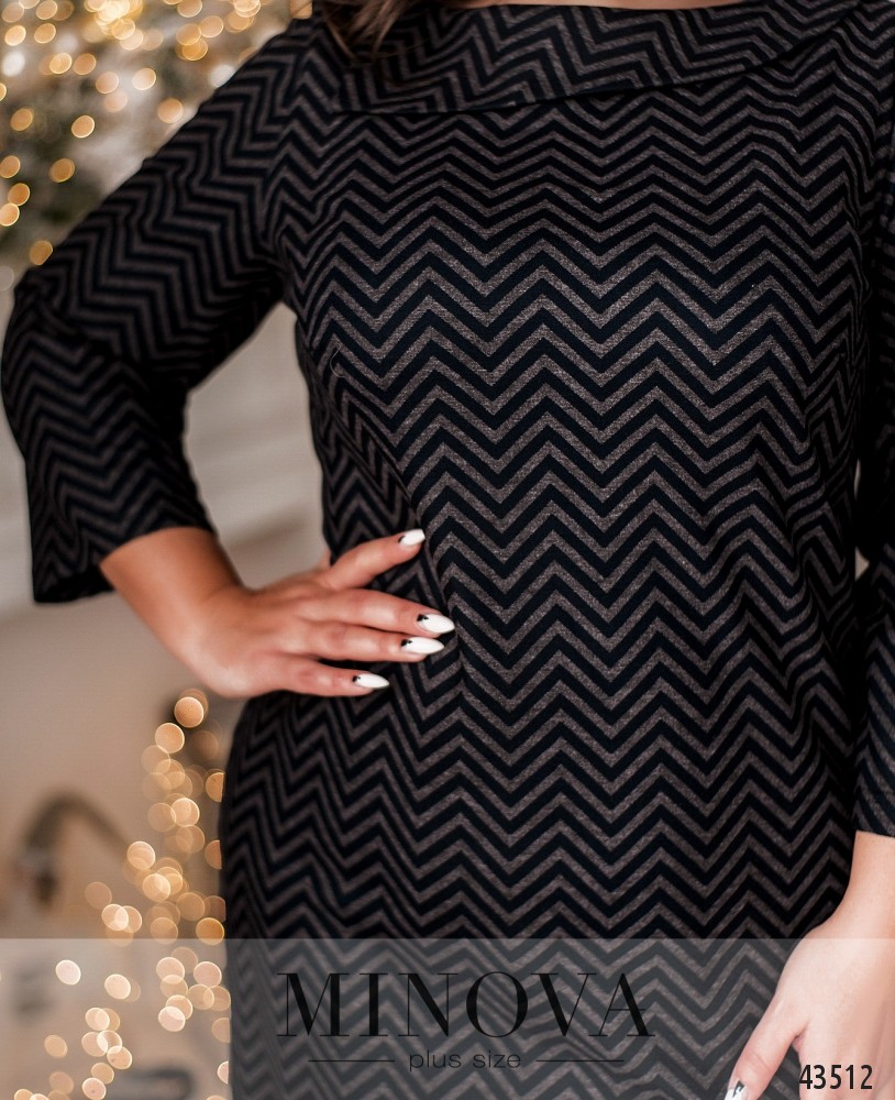 Элегантное платье батал с отложным асимметричным воротничком, рукава без манжет, на груди вытачки. Застёжек и карманов нет.