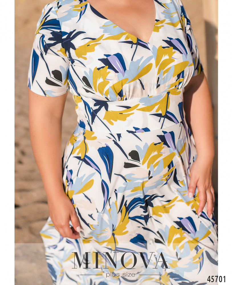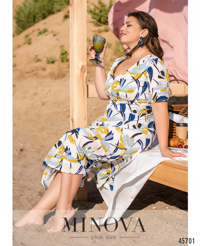 Элегантное летнее платье, выполненное из легкой натуральной ткани, сделает ваше лето ярче. Женственный лиф с короткими рукавами, глубоким V-образным вырезом и широкой вставкой из ткани, делающей акцент на талии, плавно переходит в трапацевидный воздушный подол, ниспадающий мягкими складками. Платье застегивается на невидимую молнию, вшитую в шов по спинке.