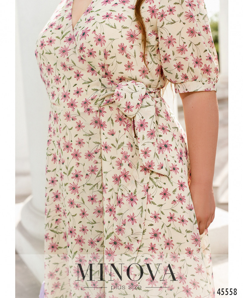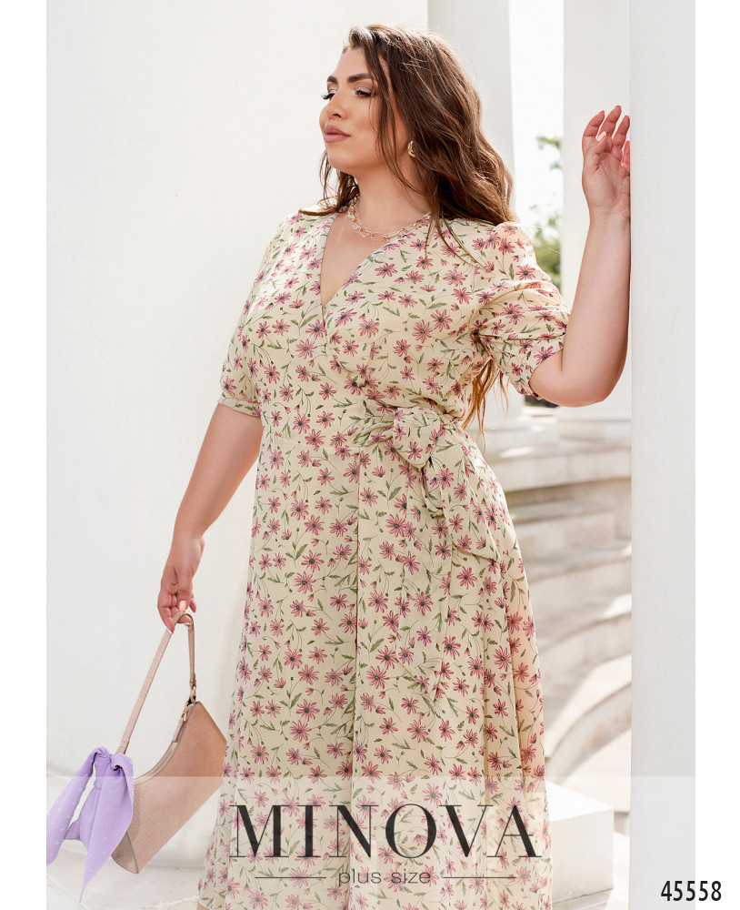 Яркое и мягкое платье плюс сайз на запАх с подкладкой. Завязывается на ленты, одна из которых продевается в отверстие на талии. Карманов нет. Рукава без подкладки, на запястьях вшиты резинки, манжет - небольшая оборка. Подол отрезной, на талии продольные вытачки вверх.