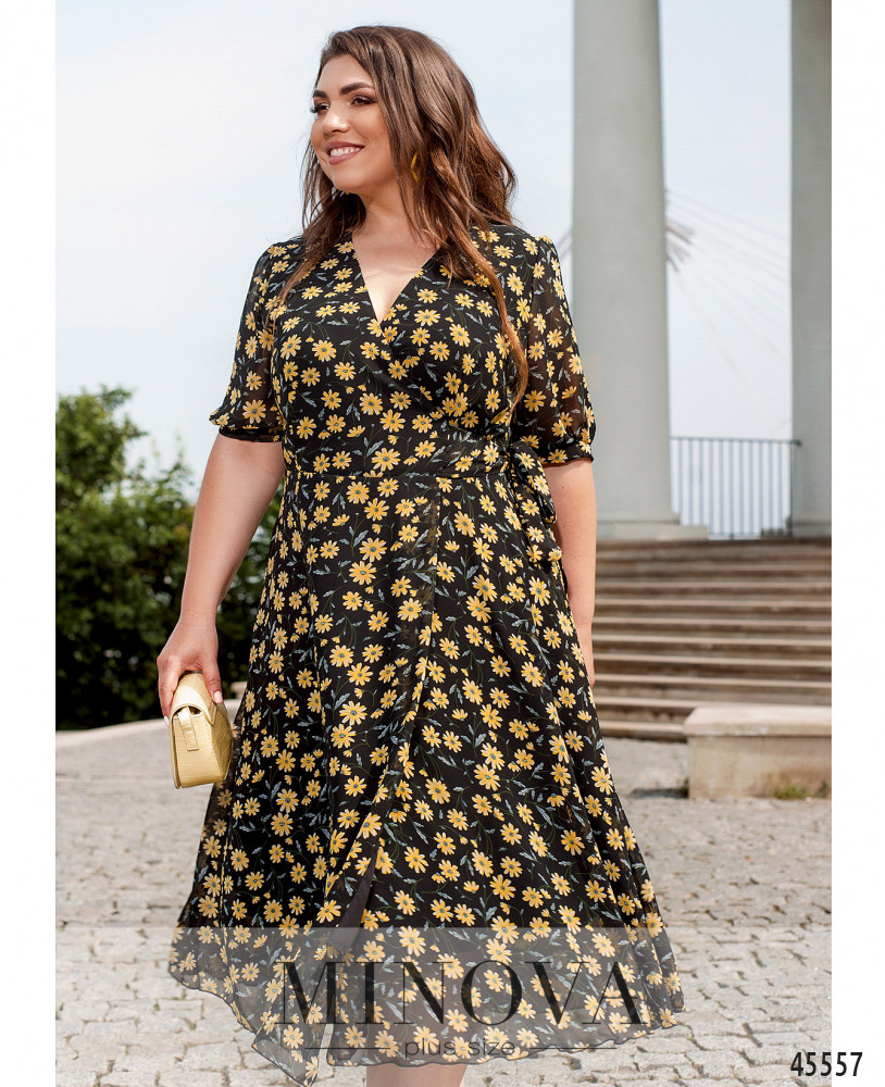 Яркое и мягкое платье плюс сайз на запАх с подкладкой. Завязывается на ленты, одна из которых продевается в отверстие на талии. Карманов нет. Рукава без подкладки, на запястьях вшиты резинки, манжет - небольшая оборка. Подол отрезной, на талии продольные вытачки вверх.