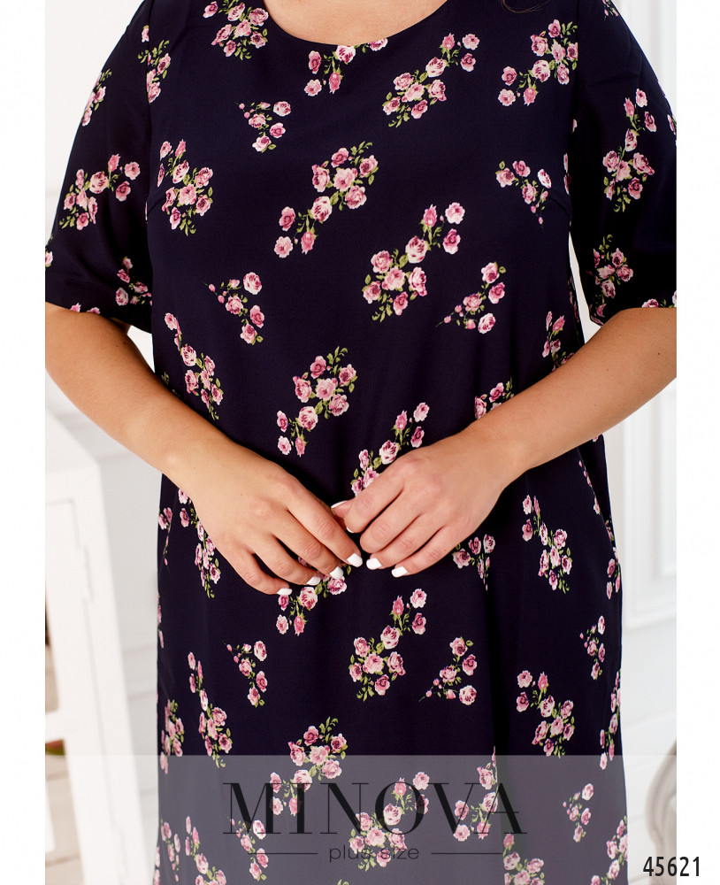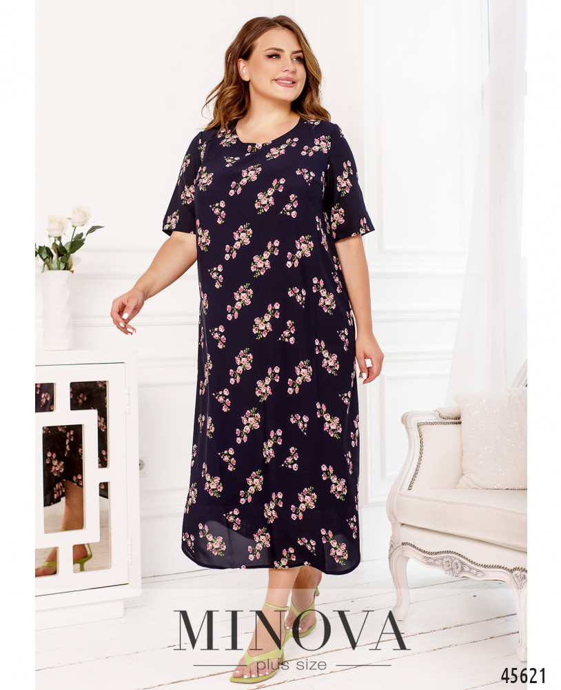 Стильное платье батал с ярким принтом, без застёжек и карманов, рукава без манжет, на груди вытачки. Подол по краям скруглённый. Вырез горловины полукруглый. Пояс НЕ входит в комплект.