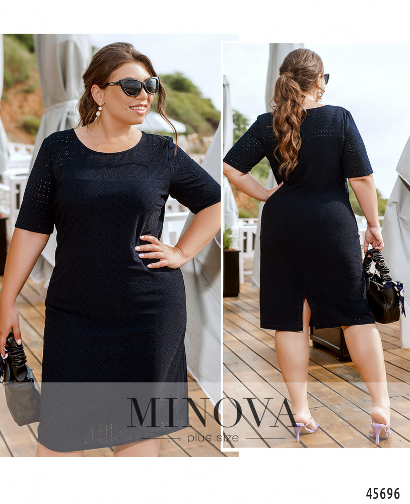 Эта изящная однотонная модель представляет собой летний вариант платья-футляра прямого кроя с подкладкой. Изюминкой этого платья является легкая трикотажная перфорированная ткань, из которой она выполнена. Классический лаконичный фасон делает эту модель универсальным решением встреч с друзьями, шоппинга и вечеринки.