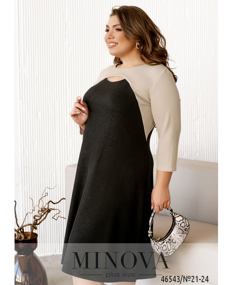 Контрастное платье может в полной мере подчеркнуть достоинства фигуры и помочь создать женственный и нежный образ. Спереди под полукруглым вырезом горловины – ещё один небольшой вырез, от которого продолжаются вытачки до подмышки. Платье свободного кроя, А-силуэта. Застёжки отсутствуют, по бокам – врезные карманы. Модель длины миди, так что вы можете сочетать его с обувью на каблуке или танкетке.