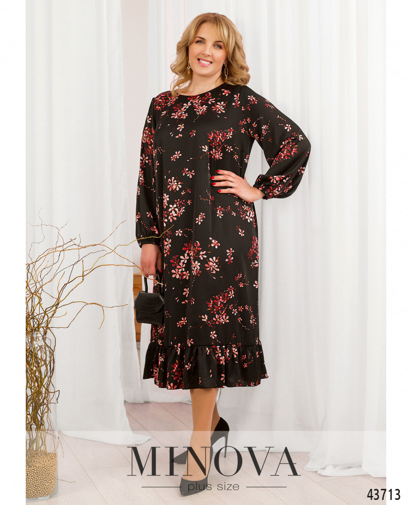 Элегантное, нарядное платье батал из мерцающего полуматового шёлка Армани. Рукава со вшитыми на запястьях резинками, по бокам - карманы в шве, на груди вытачки. Платье цельнокроеное. В комплекте пояс. Застёжка - пуговка сзади под шеей. Подол украшен мягкой оборкой.