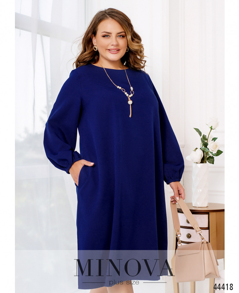 Элегантное и минималистичное платье с полукруглым широким вырезом горловины. По бокам - карманы в шве. Рукав свободный, на запястье присобран резинкой, без манжета. Застёжек нет. На груди диагональные вытачки. Украшение входит в комплект.
