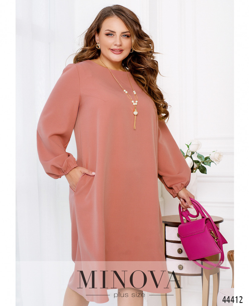 Элегантное и минималистичное платье с полукруглым широким вырезом горловины. По бокам - карманы в шве. Рукав свободный, на запястье присобран резинкой, без манжета. Застёжек нет. На груди диагональные вытачки. Украшение входит в комплект.