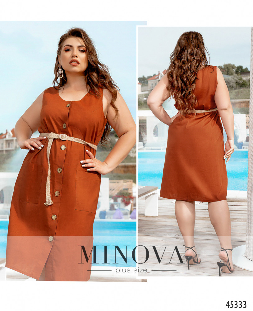 Лаконичное однотонное платье с накладными карманами и застежкой спереди на пуговицах выполнено из легкой дышащей ткани. Меняйте его силуэт от прямого к приталенному с помощью тонкого плетеного пояса, который идет в комплекте. Дополните эту модель босоножками, балетками или кедами для создания яркого летнего образа в стиле casual.