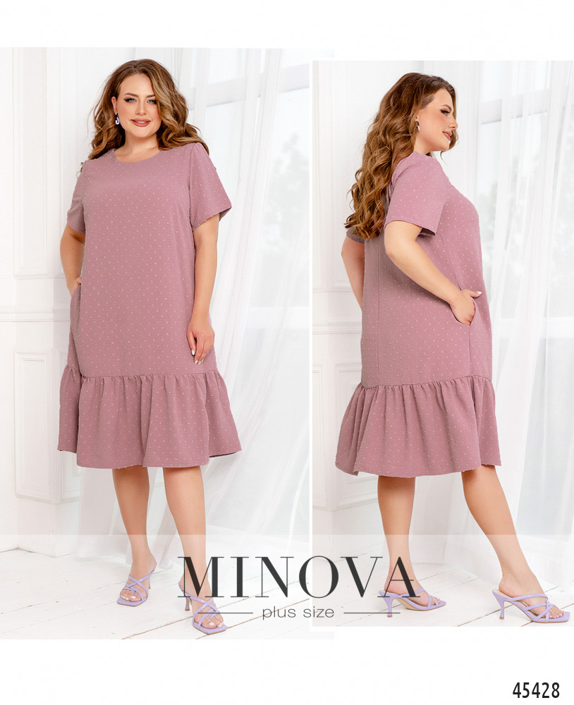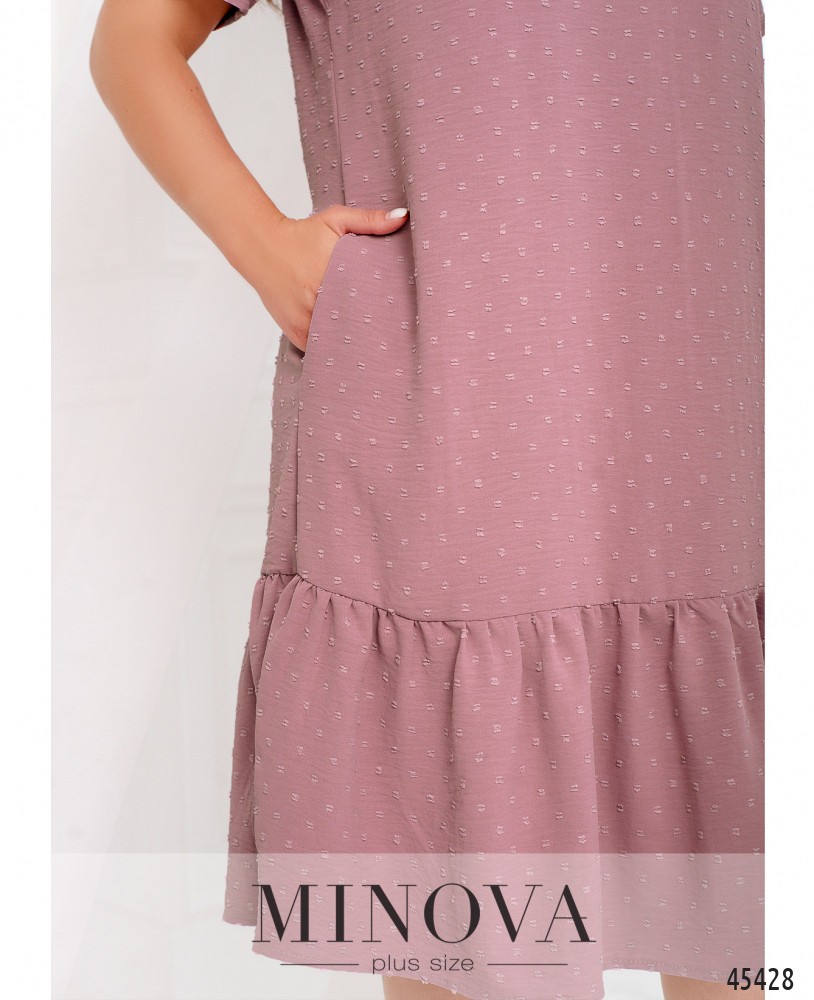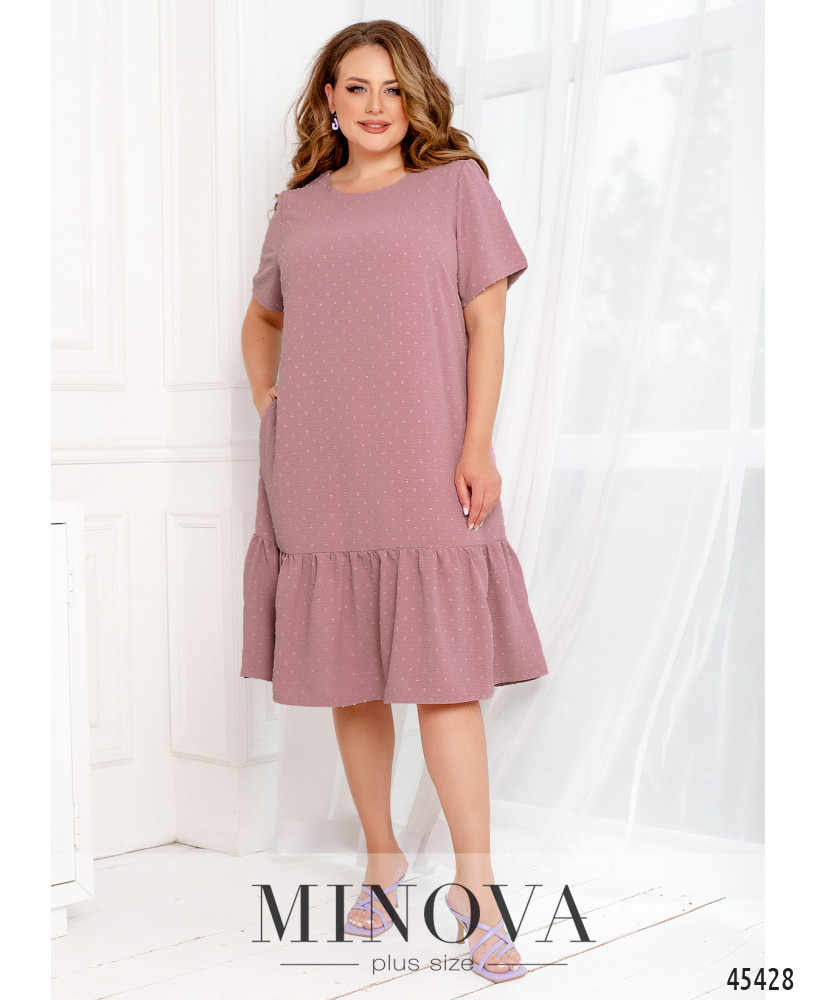 Легкое кокетливое платье миди выполнено из однотонной текстурной ткани. Базовый крой лифа с короткими рукавами и полукруглым вырезом горловины дополняет воздушная оборка-волан, подшитая к низу подола. Создайте яркий летний образ в романтическом стиле, завершив его босоножками или балетками.