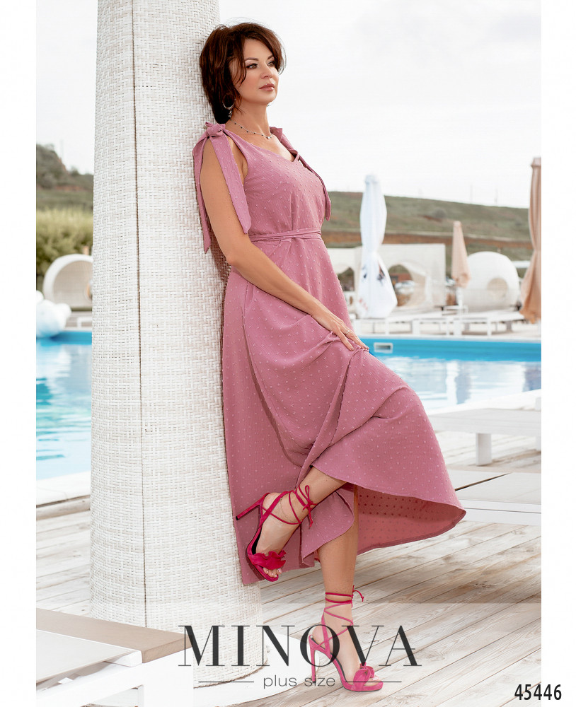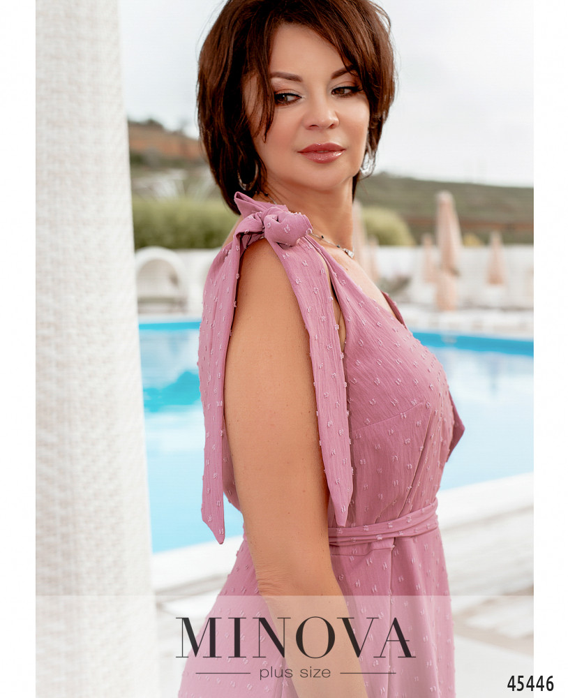 Лаконичное отрезное платье макси с карманами в боковых швах,  выполненное из однотонной текстурной ткани, поможет вам создать нежный и чувственный образ. Кокетливые завязки на плечах и V-образный вырез горловины добавят женственности, а текстильный пояс в тон, который идет в комплекте, сделает образ завершенным.
