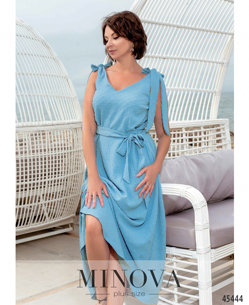 Лаконичное отрезное платье макси с карманами в боковых швах, выполненное из однотонной текстурной ткани, поможет вам создать нежный и чувственный образ. Кокетливые завязки на плечах и V-образный вырез горловины добавят женственности, а текстильный пояс в тон, который идет в комплекте, сделает образ завершенным.