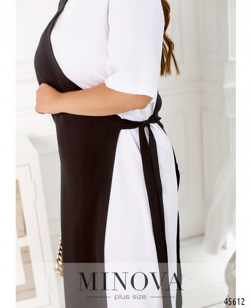 Если вам нравится самовыражаться через свой стиль и вы любите одежду необычного неожиданного кроя, то обратите внимание на эту модель. Элегантное минималистичное платье миди с короткими рукавами и полукруглым вырезом горловины в комплекте с удлиненной контрастной накидкой на одно плечо, завязывающейся сбоку на талии, сделает ваш образ стильным, модным и изысканным. Вы можете носить их вместе или раздельно, создавая различные образы с другими вещами.