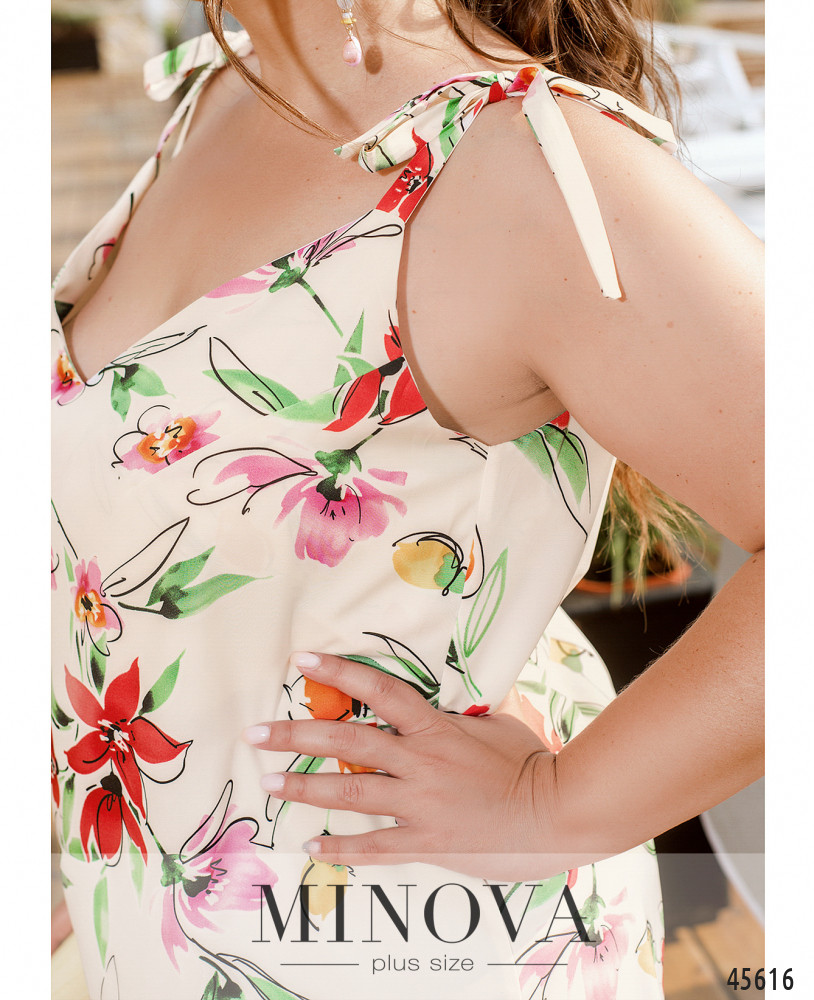 Романтичное летнее платье на тонких регулируемых бретелях с завязками внесет в образ чуточку кокетства, романтизма и женственности. Эта модель дополнена V-образным вырезом на груди и воздушной оборкой по низу подола. Пояс НЕ входит в комплект.