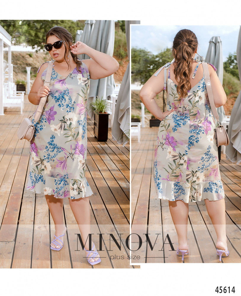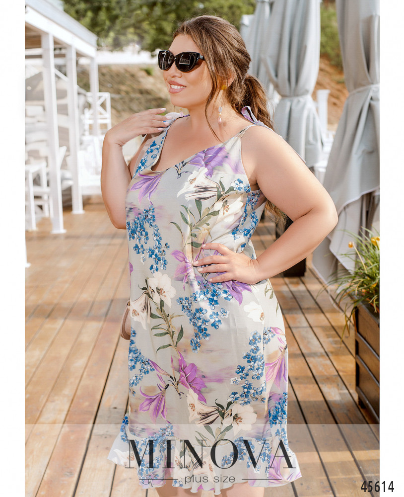 Романтичное летнее платье на тонких регулируемых бретелях с завязками внесет в образ чуточку кокетства, романтизма и женственности. Эта модель дополнена V-образным вырезом на груди и воздушной оборкой по низу подола. Пояс НЕ входит в комплект.