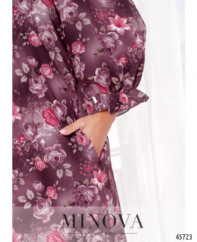 Нежное женственное платье с полукруглым вырезом горловины подойдет для прогулок и встреч с друзьями, шоппинга и вечеринки. Модель дополнена воздушными рукавами длиной 3/4 с резинкой и небольшими оборками вместо манжет, а также карманами в боковых швах.