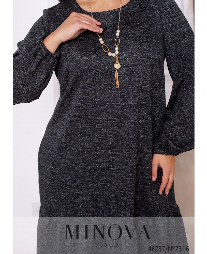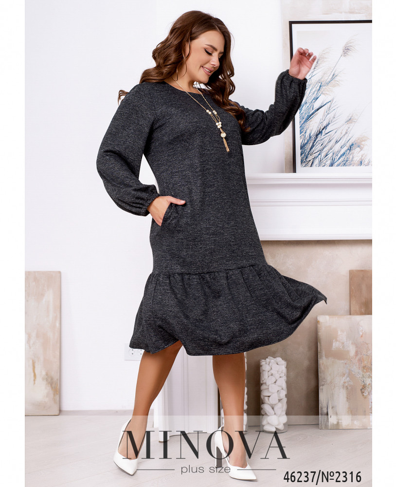Яркое платье, выполненное из ткани с люрексовой нитью, позволит вам в любую погоду и время года выглядеть женственно и привлекательно. Модель без застежек дополнена длинными рукавами, карманами в боковых швах и изящным воланчиком, подшитым к подолу.