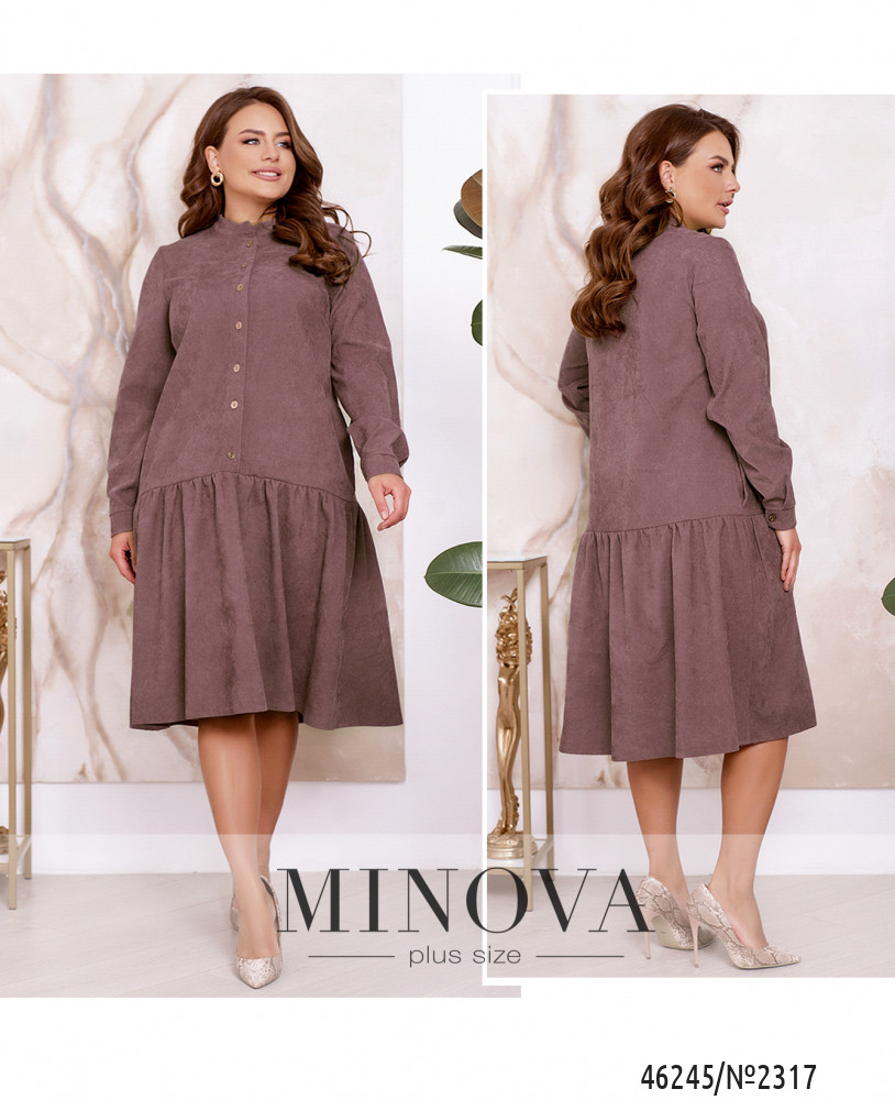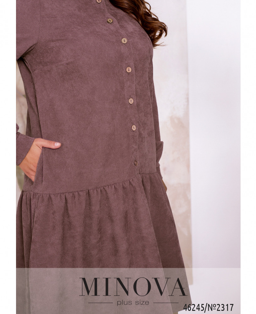 Это женственное платье, выполненное из мягкой вельветовой ткани, сделает ваш образ стильным, модным и изысканным. Модель дополнена воротником-стойкой, длинными рукавами с манжетами и воздушным игривым воланчиком, подшитым к подолу. Платье застегивается на ряд пуговиц спереди по центру.