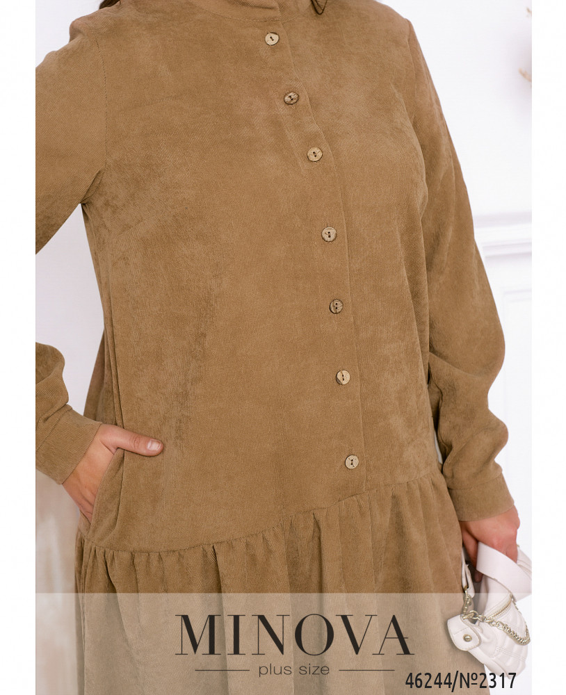 Это женственное платье, выполненное из мягкой вельветовой ткани, сделает ваш образ стильным, модным и изысканным. Модель дополнена воротником-стойкой, длинными рукавами с манжетами и воздушным игривым воланчиком, подшитым к подолу. Платье застегивается на ряд пуговиц спереди по центру.