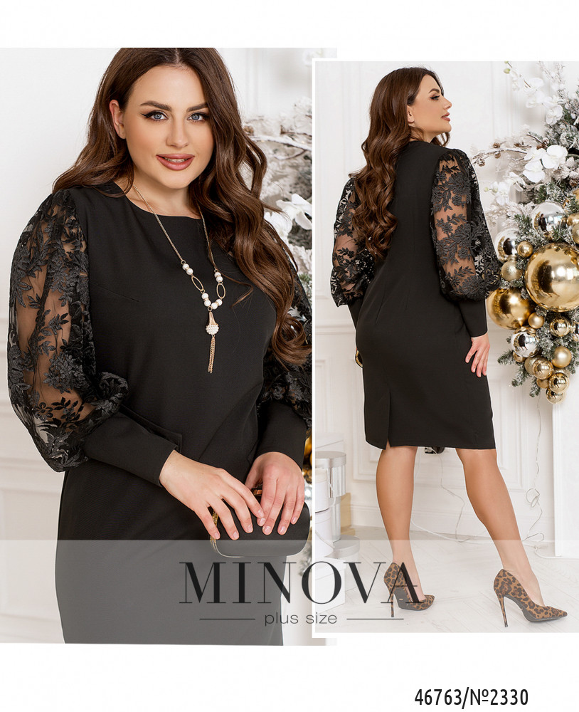 В элегантном монохромном платье прямого силуэта вы будете неотразимы и затмите всех на празднике или вечеринке. Эта модель привлекает внимание в первую очередь благодаря объемным полупрозрачным рукавам с вышивкой и плотными манжетами с пуговицами. Модель застегивается на молнию по спинке.