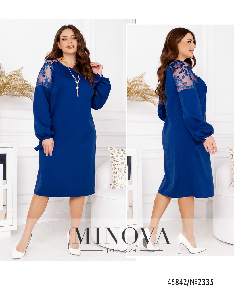 58-60 р-р: длина платья 110см, длина рукава от горловины 74см, обхват рукава 42см, ОГ - 118см, ОТ -116см, ОБ -126см.
