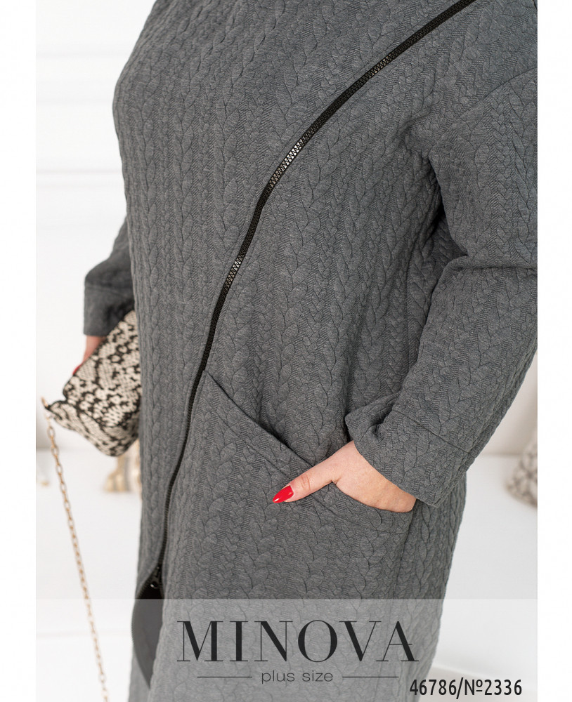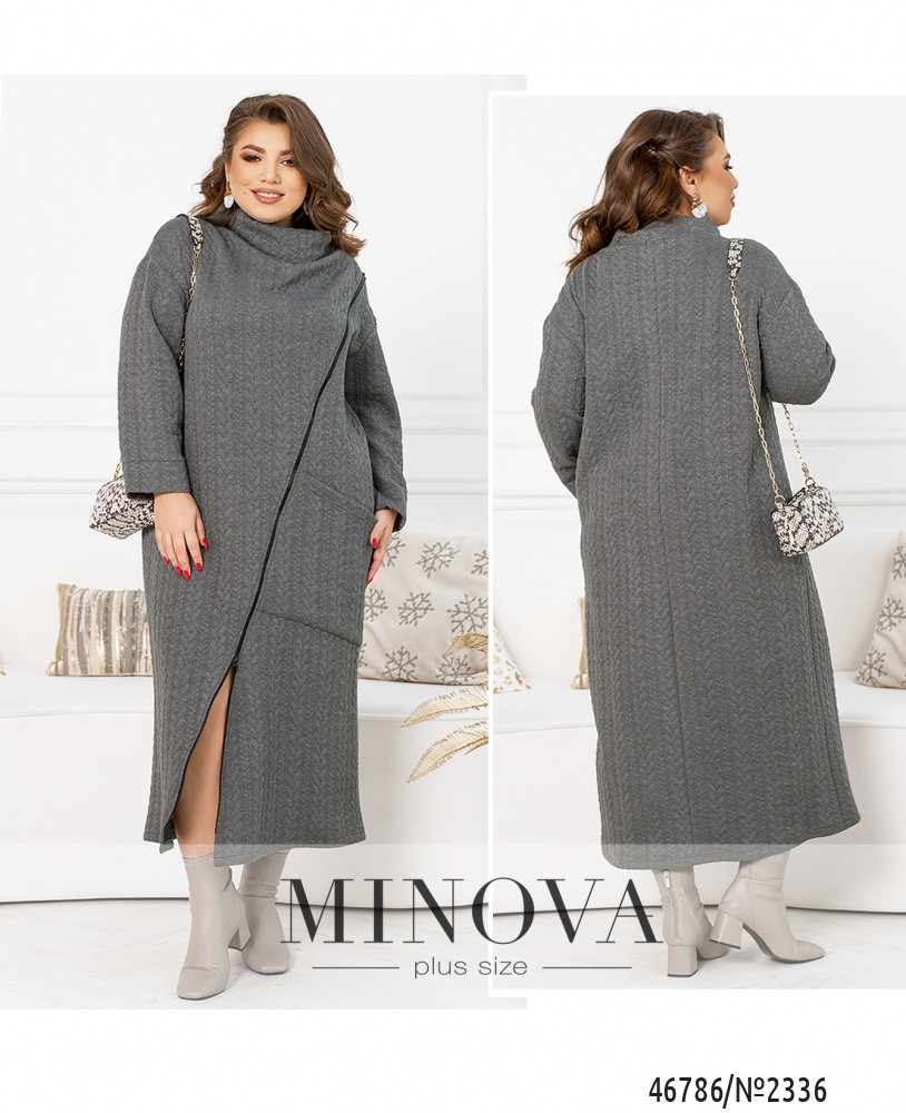 Теплое платье-миди, выполненное из мягкой структурной ткани, отличается универсальностью, а также удачно вписываются в любой стиль. Модель с высоким цельнокроеным воротником дополнена длинными рукавами с приспущенной линией плеч и большим накладным карманом спереди. Платье застегивается на змейку, вшитую спереди по диагонали.