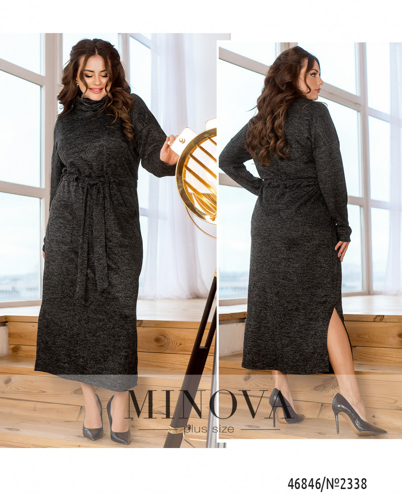 Теплое комфортное платье, выполненное из мягкой ангоры софт, позволит модницам в любую погоду и время года выглядеть женственно и привлекательно. Модель с длинными приспущенными рукавами и высоким воротником дополнена накладными карманами, поясом на кулиске и разрезами на подоле по бокам. Такое платье можно носить как с кроссовками или грубыми ботинками, так и с изящными туфлями или ботильонами на каблуке.